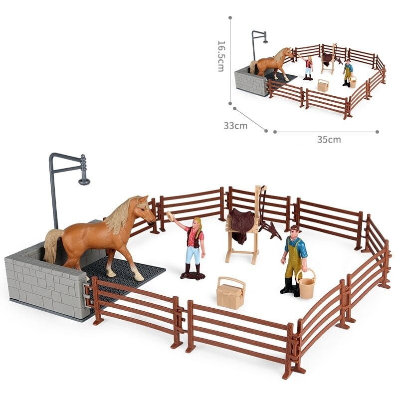 Funkcja: Oenux Farm stabilny dom figurki postaci Emulational jeździec koń zwierzęta zestaw figurka śliczne edukacyjne zabawki dla dzieci prezent