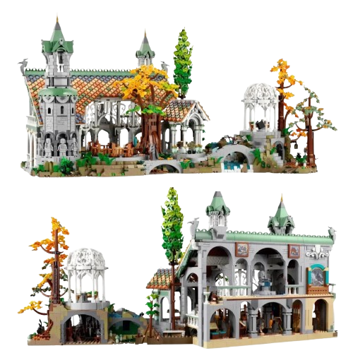 Zestaw klocków Rivendell inspirowany uniwersum Władcy Pierścieni to prawdziwa gratka dla fanów literatury i filmów fantasy oraz miłośników budowania. Model składa się z aż 6167 elementów, które pozwalają zbudować szczegółową i rozbudowaną scenografię mitycznej siedziby elfów – Rivendell. Konstrukcja wiernie odwzorowuje kultowe miejsce ze świata Śródziemia, z dbałością o detale architektoniczne, dekoracje i zieleń.